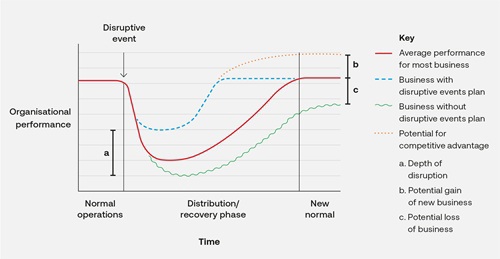 What I have found interesting from using this graph in practice is that organisations that implement effective recovery strategies have seen their organisational performance improve post-disruption.