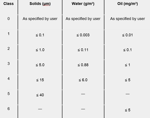 ISO 8573-1, the most frequently referenced part, outlines safe classification levels for each contaminant based on its concentration in the air. These are set out in the table below.